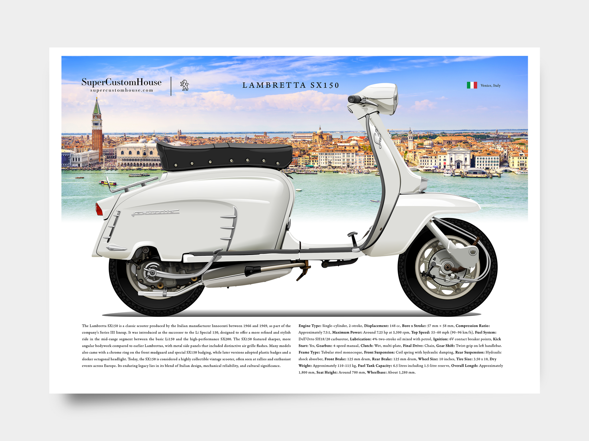 Bring a touch of classic Italian charm to your space with our Vintage Lambretta Poster. Perfect for Lambretta lovers and retro enthusiasts, this high-quality print captures the spirit of freedom, adventure, and timeless design. Printed on premium paper with vibrant, fade-resistant inks, it’s ideal for your living room, garage, office, or studio. Whether you're a rider or a dreamer, this poster brings the magic of the open road right to your walls.